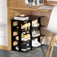 PREMIUM MATERIAL The narrow shoe storage cabinet made of premium PP plastic with high load-bearing capacity, stability and durability. The bottom of shoe cubby is cocked to prevent slipping, saving your time to sort out the falling shoes repeatedly. The upper layer can hold handbags, keys to properly use of space.